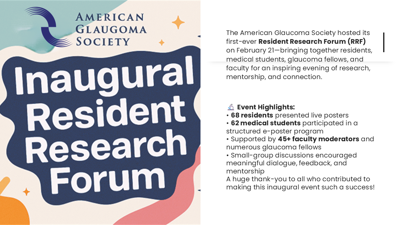 The American Glaucoma Society successfully hosted its inaugural Resident Research Forum (RRF) on February 21, bringing together faculty, residents, medical students, and glaucoma fellows for an evening of research, mentorship, and connection.